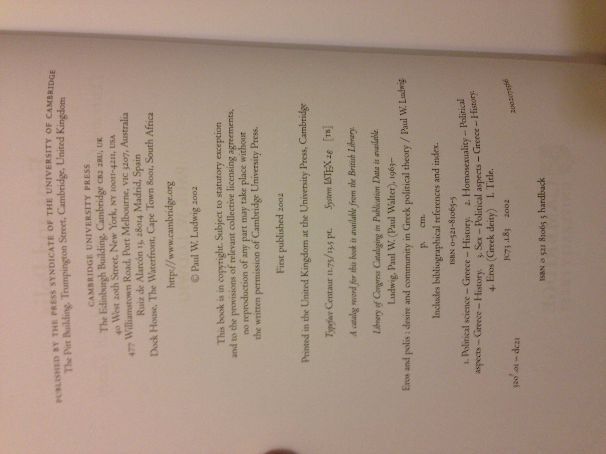 Details: Paul Ludwig examines how and why Greek theorists treated political passions as erotic. Because of the tiny size of ancient Greek cities, contemporary theory and ideology could conceive of entire communities based on desire. A recurrent aspiration was to transform the polity into one great household that would bind the citizens together through ties of mutual affection. In this study, Ludwig evaluates sexuality, love, and civic friendship as sources of political attachment and as bonds of political association.