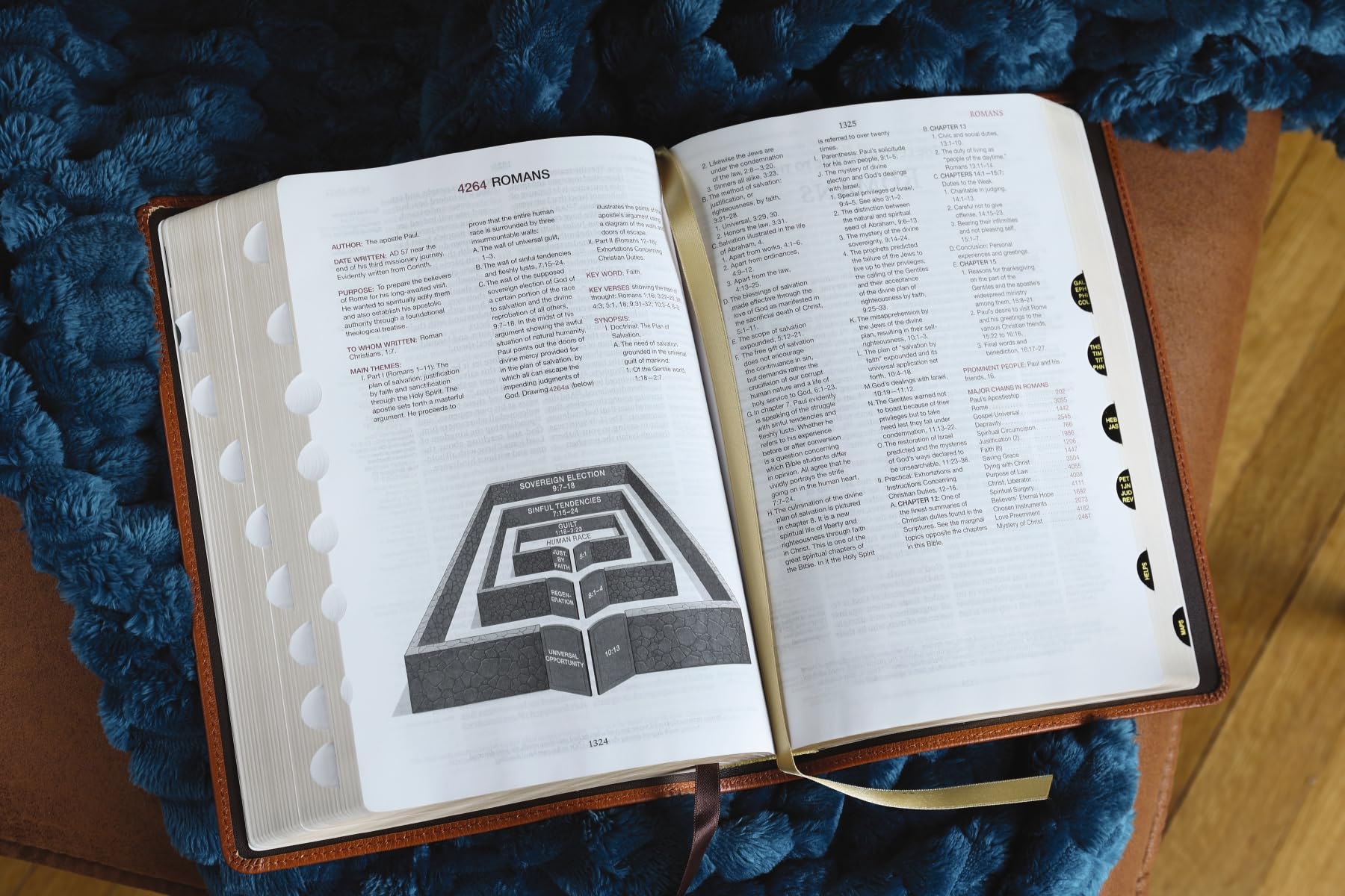 Features: Complete text of the English Standard Version (ESV) Easy-to-understand chain-reference system with over 100,000 references Alphabetical and numerical indexes highlight study materials for over 8,000 topics, each with its own topic number, for exhaustive topical study An extensive study resource section includes biographical sketches, illustrated studies of the Bible, a concordance, Bible harmonies, and many other helpful study tools Fresh, two-color page design 66 book introductions 16-page full-color map section with map index Line-matched text for enhanced readability Words of Jesus in red Presentation page for gift-giving Gilded page edges Raised spine hubs Two double-sided satin ribbon markers, each 3/8-inch wide Genuine calfskin leather cover lies flat when open Thumb indexed to make finding the books of the Bible easier Readable Lexicon typeface 9.5-point type size