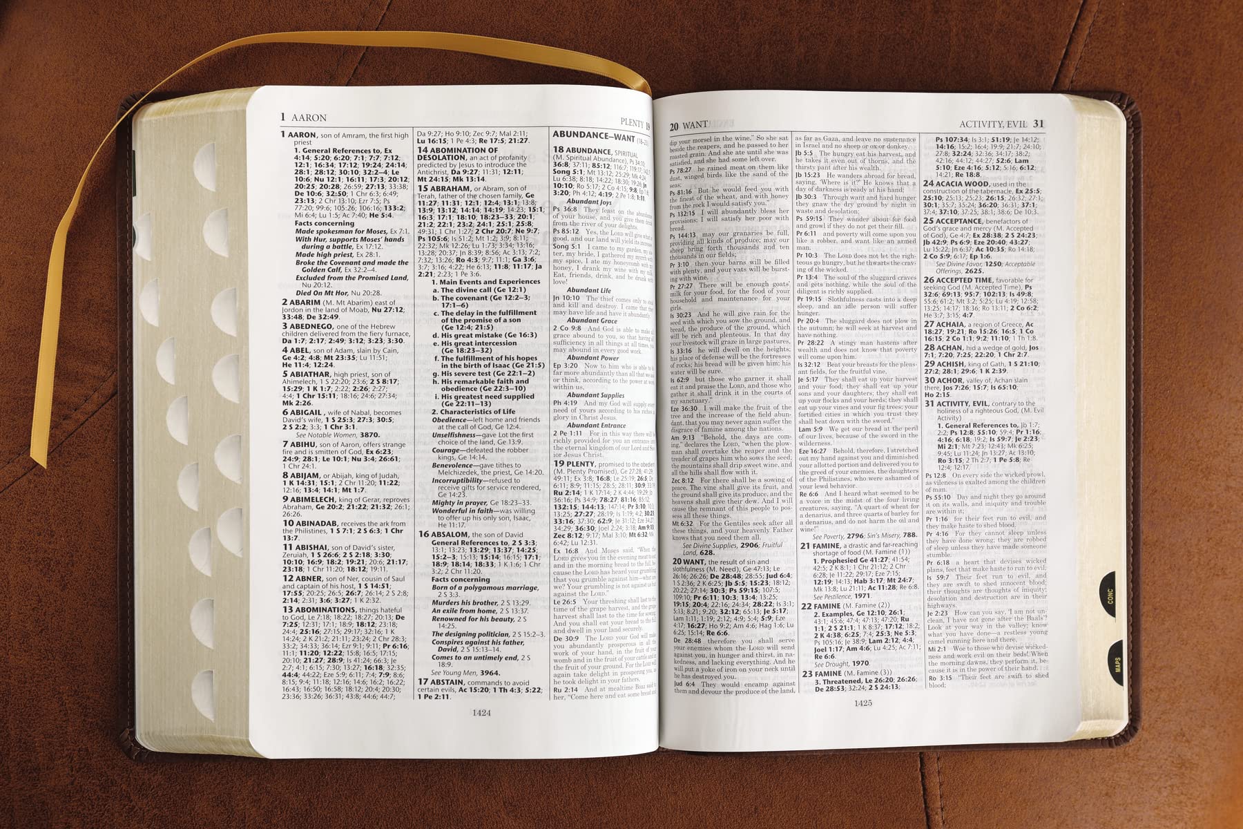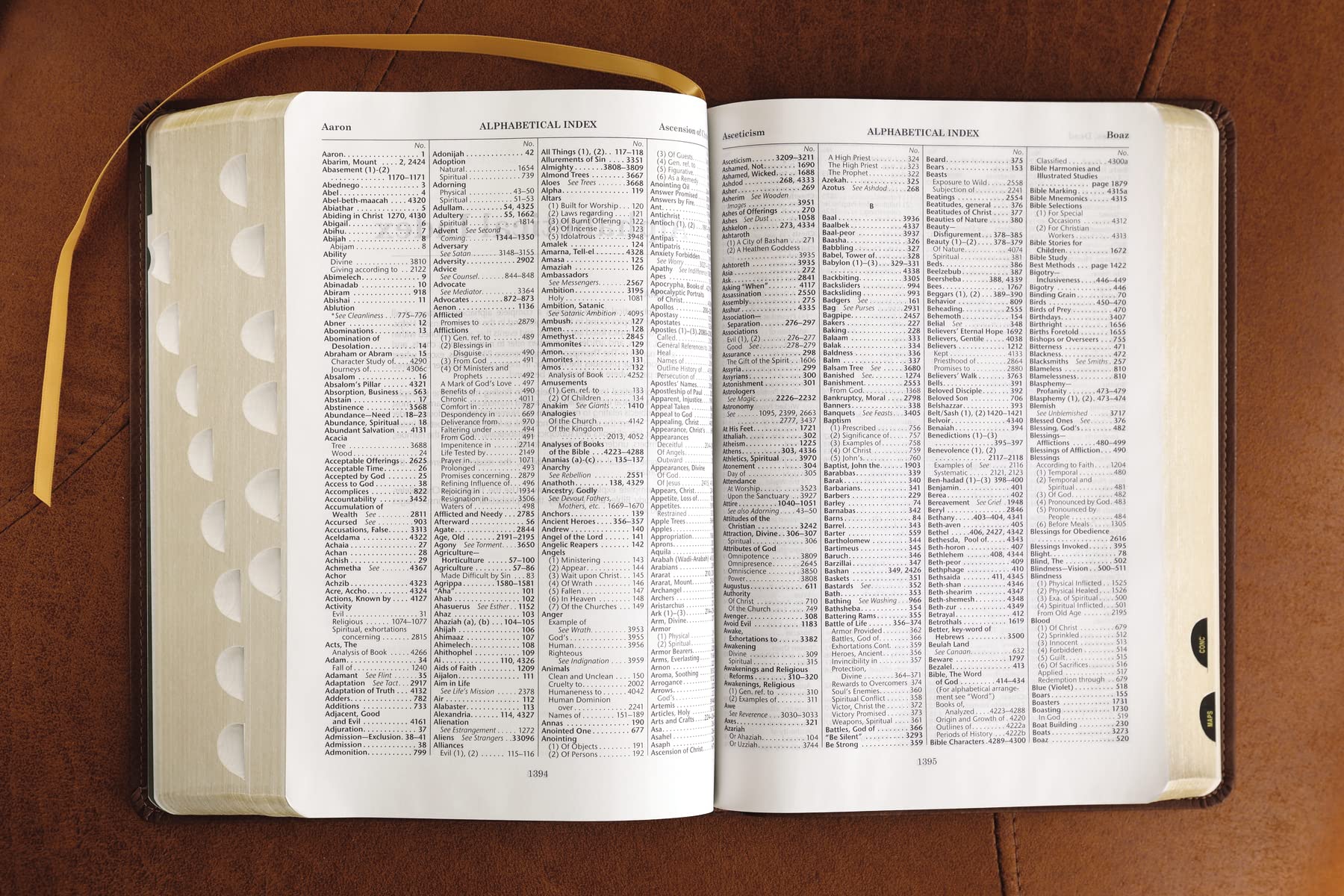 Features: Full text of the English Standard Version (ESV) Easy to understand Chain-Reference System with over 100,000 references in the margins References cover over 8,000 topics, each with its own pilot number for exhaustive topical study Complete alphabetical and numerical indices listing all 8,000 topics with corresponding pilot numbers and Bible references for comprehensive topical study Bible study aids such as biographical sketches of the most prominent people in the Bible, an archeological supplement, glossary, concordance, Bible harmonies, and outlines of each book of the Bible Key Verses and Key Thoughts provide basic information you can use to develop your own study Verse Analysis shows the topics and themes of every verse and provides easy reference to other verses with the same topics or themes 16-page full-color map section Words of Christ in red Satin ribbon marker Presentation page for gift-giving Gold gilded page edges Cover lies flat when open Thumb indexed tabs to help you find each book of the Bible 8.3-point type size