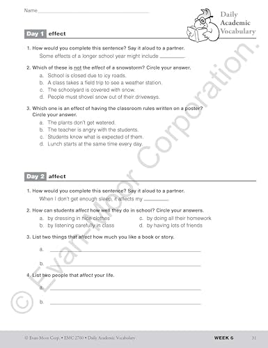 Each week of Daily Academic Vocabulary follows the same five-day format, making the content more accessible for both students and teachers.
