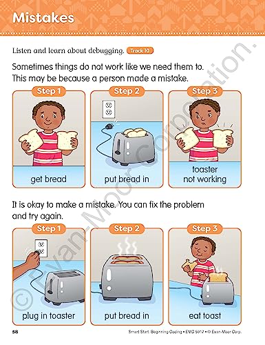 Evan-Moor Smart Start Beginning Coding, Grade PreK, Activity Workbook, Includes Stickers and Audio read along, Basic Skills, Critical Thinking, ... ... Beginning Coding Stories and Activities)