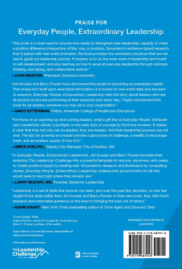 A book about leadership for people who are not in formal or hierarchical leadership positions, Everyday People, Extraordinary Leadership provides readers with a comprehensive and practical approach to addressing leadership challenges, no matter the setting or circumstance. Esteemed scholars and sought-after consultants Jim Kouzes and Barry Posner adapt their trademark The Five Practices of Exemplary Leadership® framework to today’s more horizontal workplace, showing people that leadership is not about where you are in the organization; it’s about how you behave and what you do.