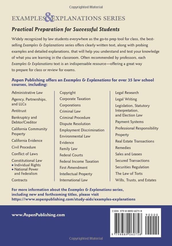 Details: A favorite classroom prep tool of successful students that is often recommended by professors, the Examples & Explanations (E&E) series provides an alternative perspective to help you understand your casebook and in-class lectures. Each E&E offers hypothetical questions complemented by detailed explanations that allow you to test your knowledge of the topics in your courses and compare your own analysis.