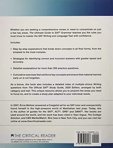 Details: The fifth edition of "The Ultimate Guide to SAT® Grammar" provides comprehensive coverage of all the grammar, rhetoric, and data-analysis concepts tested on the redesigned SAT® Writing and Language Test, and includes more than 300 new in-depth explanations to practice questions. Dozens of exercises help students move from studying concepts individually to applying their skills in a passage-based context. Includes a complete index of Writing questions from the eight exams in the College Board Official SAT Study Guide, 2020 Edition, arranged both by category and by test.