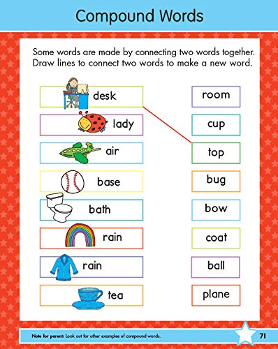 Games and activities: More than 220 colorful illustrations and fun activities will help your child further develop and retain learned skills. Educational and fun: Watch your child light up as they explore a first grade workbook that transforms games they'll love into lots of learning. Colorful and Illustrated: Bright and friendly illustrations make this first grade workbook encouraging and fun for young learners. Perfect for First Graders: Your first grader will learn about developmentally appropriate subjects, like phonics, spelling, language arts, solving math problems, and more. Parents Tips and Tricks: Parents will find helpful notes in guiding each lesson and an answer key at the back of the book.