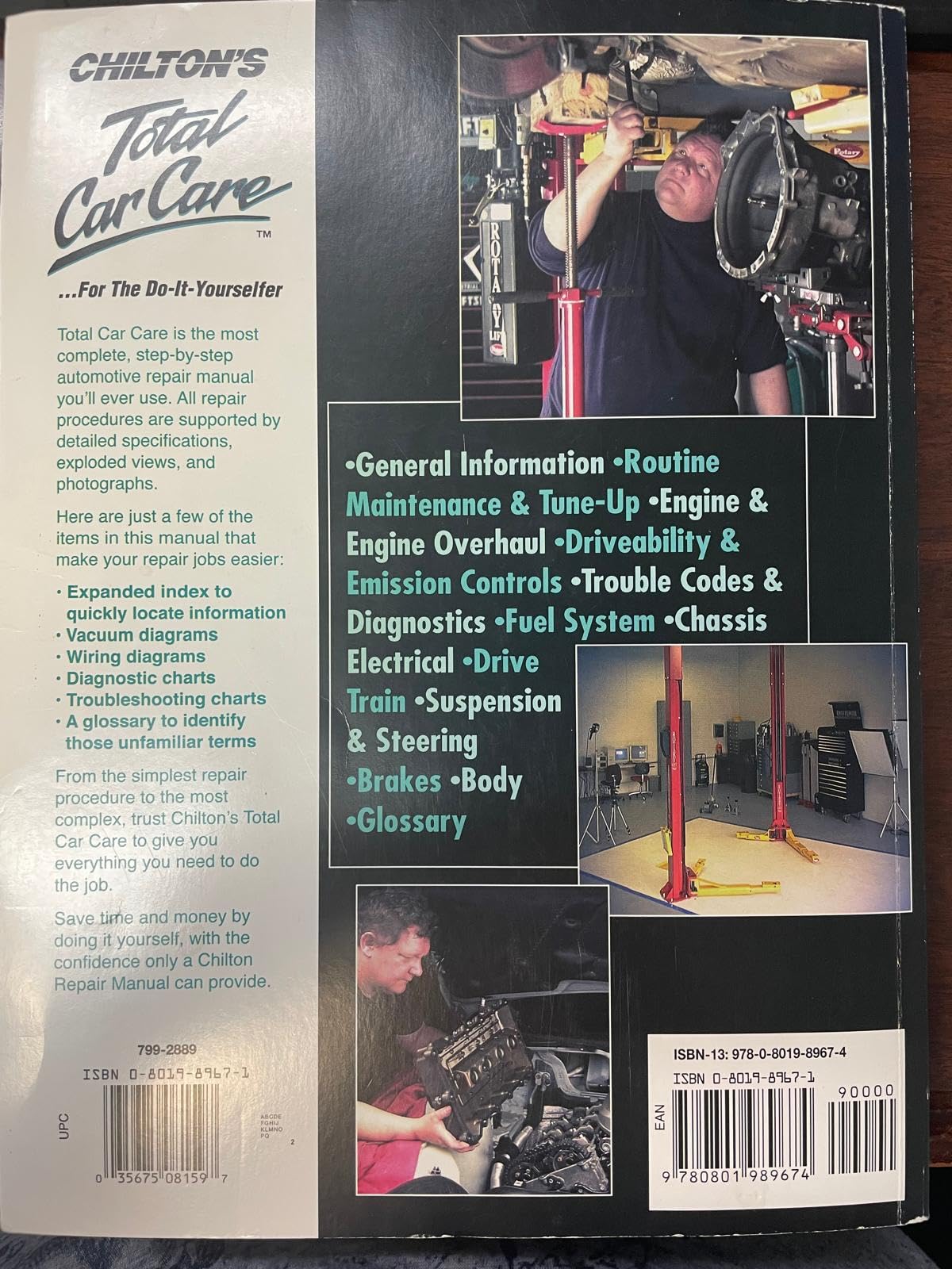 Details: Total Car Care is the most complete, step-by-step automotive repair manual you'll ever use. All repair procedures are supported by detailed specifications, exploded views, and photographs. From the simplest repair procedure to the most complex, trust Chilton's Total Car Care to give you everything you need to do the job. Save time and money by doing it yourself, with the confidence only a Chilton Repair Manual can provide.