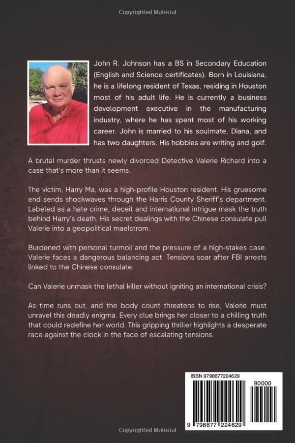 If you savor a suspense story, then "Fortune Cookie" by John R. Johnson, featuring Valerie Richard, a formidable female detective will certainly deliver . Amidst the aftermath of her divorce, Valerie is thrust into a murder investigation that unveils a sinister plot.