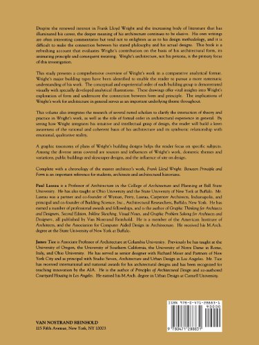 Details: Despite the renewed interest in Frank Lloyd Wright and the increasing body of literature that has illuminated his career, the deeper meaning of his architecture continues to be elusive. His own writings are often interesting commentaries but tend not to enlighten us as to his design methodology, and it is difficult to make the connection between his stated philosophy and his actual designs. This book is a refreshing account that evaluates Wright's contribution on the basis of his architectural form, its animating principle and consequent meaning. Wright's architecture, not his persona, is the primary focus of this investigation. This study presents a comprehensive overview of Wright's work in a comparative analytical format. Wright's major building types have been identified to enable the reader to pursue a more systematic understanding of his work. The conceptual and experiential order of each building group is demonstrated visually with specially developed analytical illustrations. These drawings offer vital insights into Wright's exploration of form and underscore the connection between form and principle. The implications of Wright's work for architecture in general serves as an important underlying theme throughout. This volume also integrates the research of several noted scholars to clarify the interaction of theory and practice in Wright's work, as well as the role of formal order in architectural experience in general. By seeing how Wright integrates his intuitive and intellectual grasp of design, the reader will build a keen awareness of the rational and coherent basis of his architecture and its symbiotic relationship with emotional, qualitative reality. A graphic taxonomy of plans of Wright's building designs helps the reader focus on specific subjects. Among the diverse areas covered are sources and influences of Wright's work, domestic themes and variations, public buildings and skyscraper designs, and the influence of site on design. Complete with a chronology of the master architect's work, Frank Lloyd Wright: Between Principle and Form is an important reference for students, architects and architectural historians.