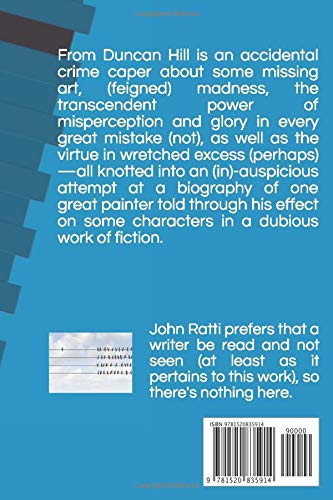 Details: From Duncan Hill is an accidental crime caper about some missing art; (feigned?) madness; the transcendent power of misperception, glory in every great mistake (not) and the virtues of wretched excess (perhaps) - all knotted into an (in-)auspicious attempt at a biography of one great painter told through his effect on some characters in a dubious work of fiction. "They're going to steal it, I'm sure..." - That's what the unnamed narrator believes about the two familiar strangers flanking him in the museum. A struggling and blocked writer who draws inspiration from living in proximity to long -deceased painter Fitz H. Lane, he believes he's discovered a plot to steal the artist's masterpiece, From Duncan Hill. So to "save" it, he takes the painting first. But is that really why he does it? Intending to hold the work until the "real" thieves are discovered,the narratror's friends soon discover the painting in his possession. Are the aware he has the genuine From Duncan Hill? The narrator certainly thinks so as they help him build an altar to the work hidden in his crawl space after they all begin experiencing a run of good luck. "We're being rewarded," the narrator believes, "for rescuing the work." Consequences of From Duncan Hill going missing echo across the town, nation and world; extortion attempts, jailings, even a suicide occurs. Meanwhile, the narrator grows obsessed with detials and mysteries surrounding Lane's life before forgetting about it all when his greatest dream comes true. At least it seems it does. From Duncan Hill features a quirky bunch of characters like The Gang That Couldn't Shoot Straight, has a bit of the sloppy madness of Catch-22, is evocative of the picaresque details in A Confederency of Dunces and holds a tad of the swirling downward spiral from Lucky Jim with touches of Tom Robbins, Carl Hiaasen and the delusions of the narrator in Nobokov's Lolita. Sound unlikely? ... We agree. Read it and see for yourself!