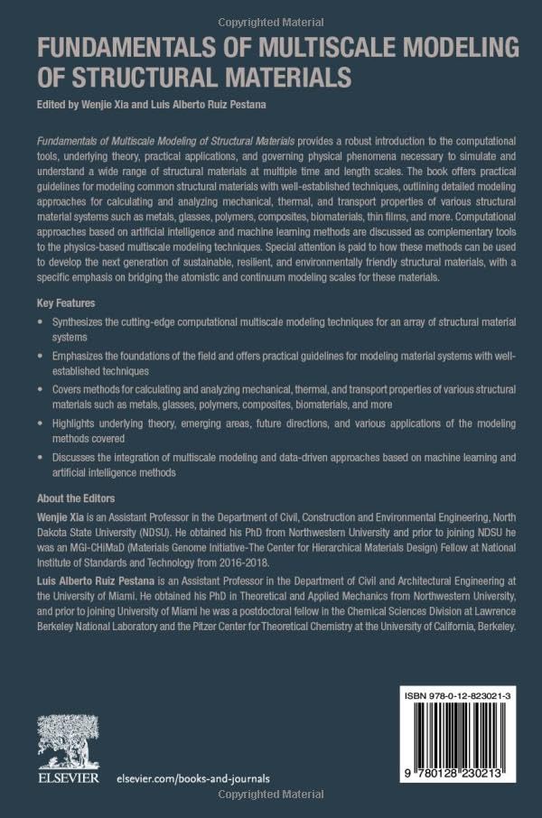 Details: Fundamentals of Multiscale Modeling of Structural Materials provides a robust introduction to the computational tools, underlying theory, practical applications, and governing physical phenomena necessary to simulate and understand a wide-range of structural materials at multiple time and length scales. The book offers practical guidelines for modeling common structural materials with well-established techniques, outlining detailed modeling approaches for calculating and analyzing mechanical, thermal and transport properties of various structural materials such as metals, cement/concrete, polymers, composites, wood, thin films, and more.
