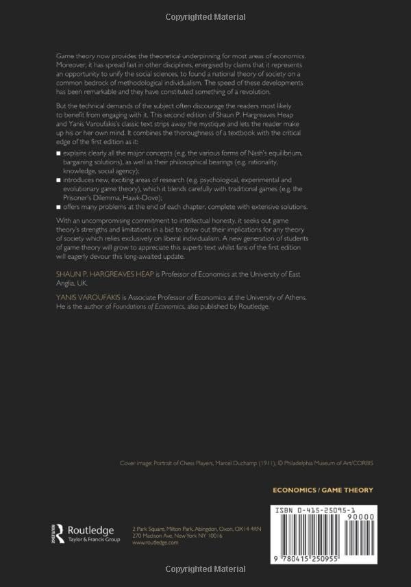 Details: In recent years game theory has swept through all of the social sciences. Its practitioners have great designs for it, claiming that it offers an opportunity to unify the social sciences and that it it the natural foundation of a rational theory of society. Game Theory is for those who are intrigued but baffled by these claims, and daunted by the technical demands of most introductions to the subject.
