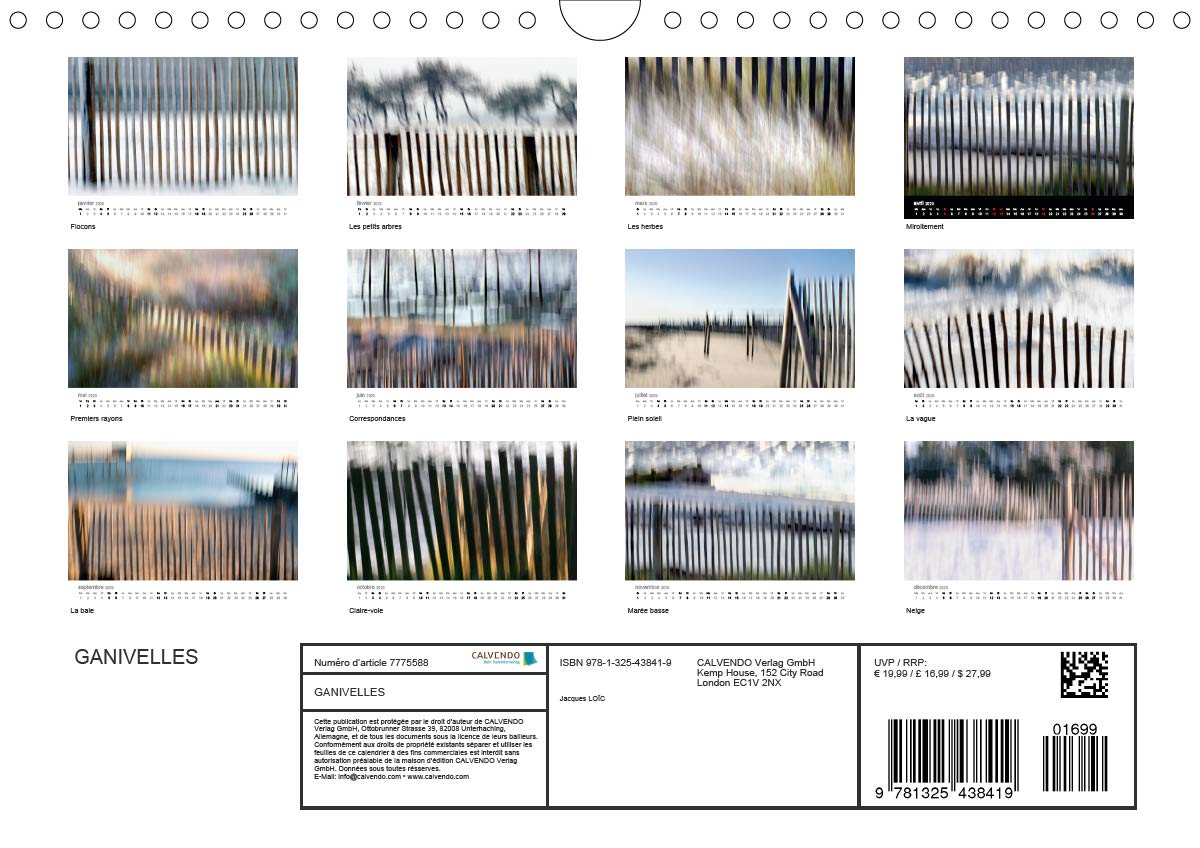 Details: Loin des fronts de mer qui btonnent les rivages, il est des amnagements qui tmoignent d'une relle harmonie entre l'homme et le milieu naturel des ctes. Ainsi, l o les ganivelles pousent et modlent les dunes, se cre un paysage tout la fois fonctionnel et potique, source d'inspiration renouvele au gr des lumires et des mares. Les calendriers Calvendo sont des produits haut de gamme - avec ces plus qui font la diffrence : nos calendriers prsentent bien toute lanne grce leur papier de qualit suprieure et leur reliure spirales pour une manipulation des pages plus aise et une tenue parfaitement droite contre le mur. Un film plastique transparent protge la couverture de ces calendriers toujours plus solides, qui se dclinent dsormais en cinq langues. Offrez-vous un calendrier Calvendo qui reste beau tout au long de lanne. Ce calendrier succs a t rdit cette anne avec les mmes images et une grille calendaire mise jour.