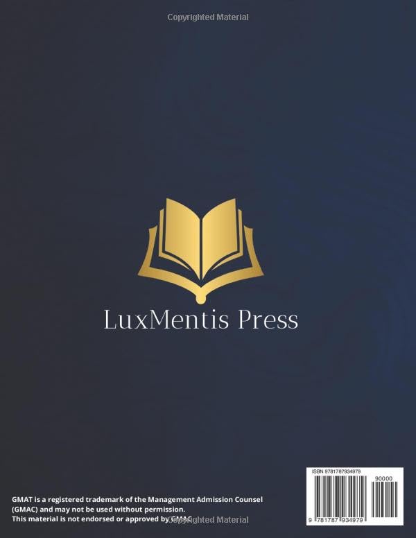 Some reasons why this guide is perfect for you: All you need in one guide—forget about multiple heavy books that make studying impossible! 10 full-length exams mirroring the new GMAT to help you test your knowledge and prepare for exam day. 1,000+ practice questions with detailed explanations to deepen your understanding and conquer every problem. The secret strategy to master Data Insights questions while avoiding common mistakes. A complete study plan that helps you organize your time and study more efficiently. Stress and anxiety management techniques to help you relax during the exam and avoid careless mistakes. WEEKLY EXAM BONUS: receive every week 1 brand new full-length practice test!