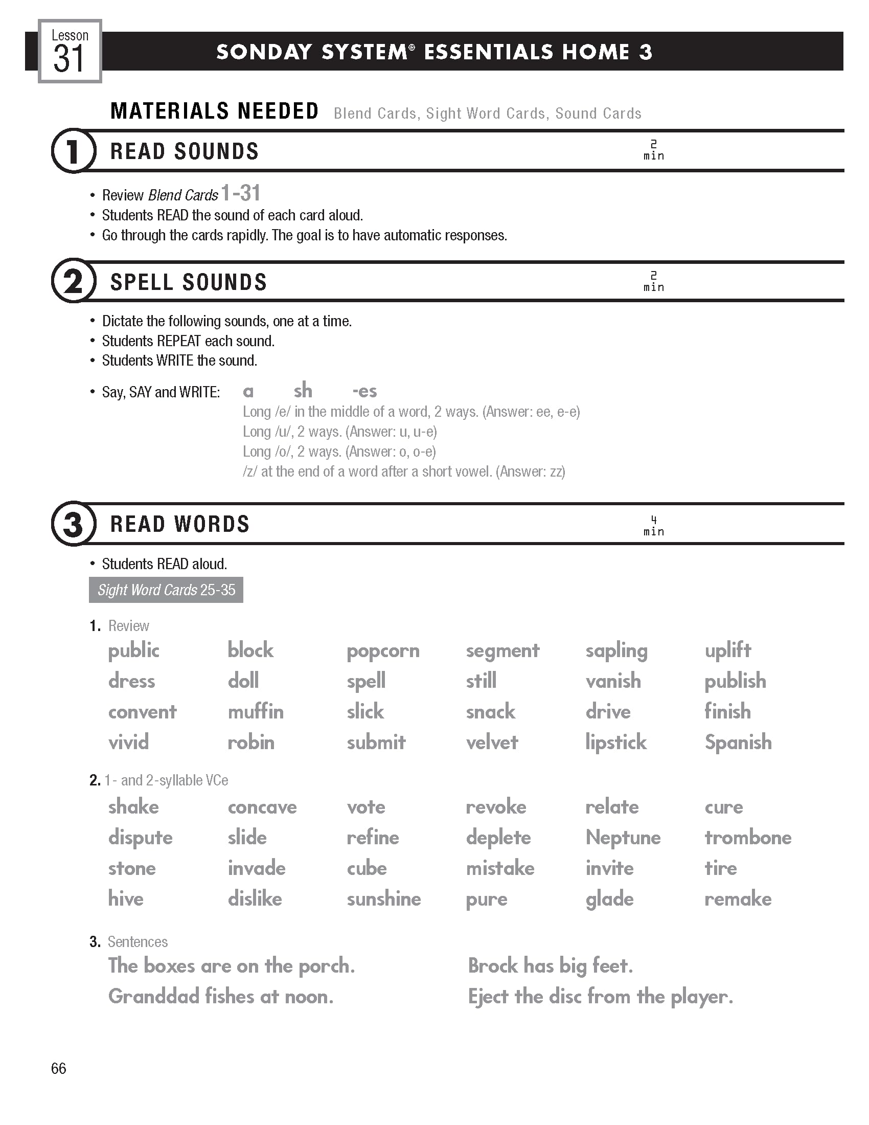 Details: Multisensory Reading Instruction for All Children Created by leaders in the proven Orton-Gillingham method, Sonday System Essentials Home is a systematic, direct and explicit way to teach phonics and other essential reading skills in home settings using proven multisensory instruction. The Sonday System Essentials Home Set features daily lesson plans and all materials needed to provide multisensory reading instruction in a home setting, as well as assessments to help educators identify and provide early intervention for struggling students. Skills and Concepts Taught: Phonological awareness, phonics, blending, segmenting, spelling, reading, writing Setting: homeschooling/homeschool, core reading instruction Content Level: 3rd grade Benefits: 20-minute daily lessons, flexibility, no training in language instruction required, non-consumable materials, lesson plans included, multisensory, structured literacy Materials included: Learning Plan Book (teacher guide), flash cards