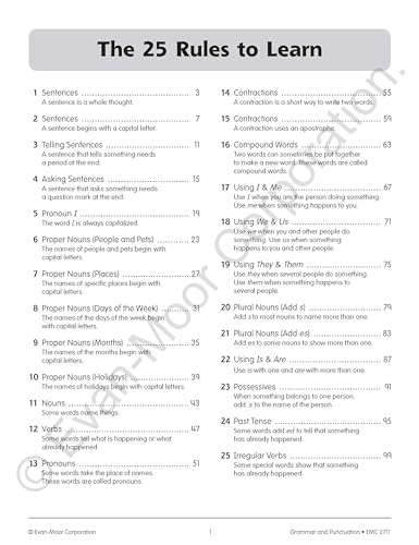 25 grammar and punctuation rules are supported by reproducible practice pages to help students develop important language skills.