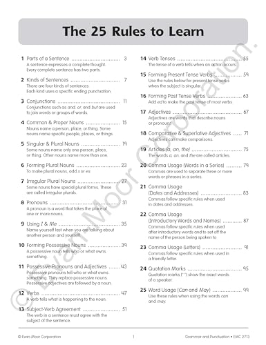 Details: Evan-Moor Grammar & Punctuation Book designed for grade 3 offers 25 rule charts plus three activity sheets per rule. Book includes CD-ROM with review test and answer key. Book also features student record sheet, a reproducible student rule book and consists of 112 pages.