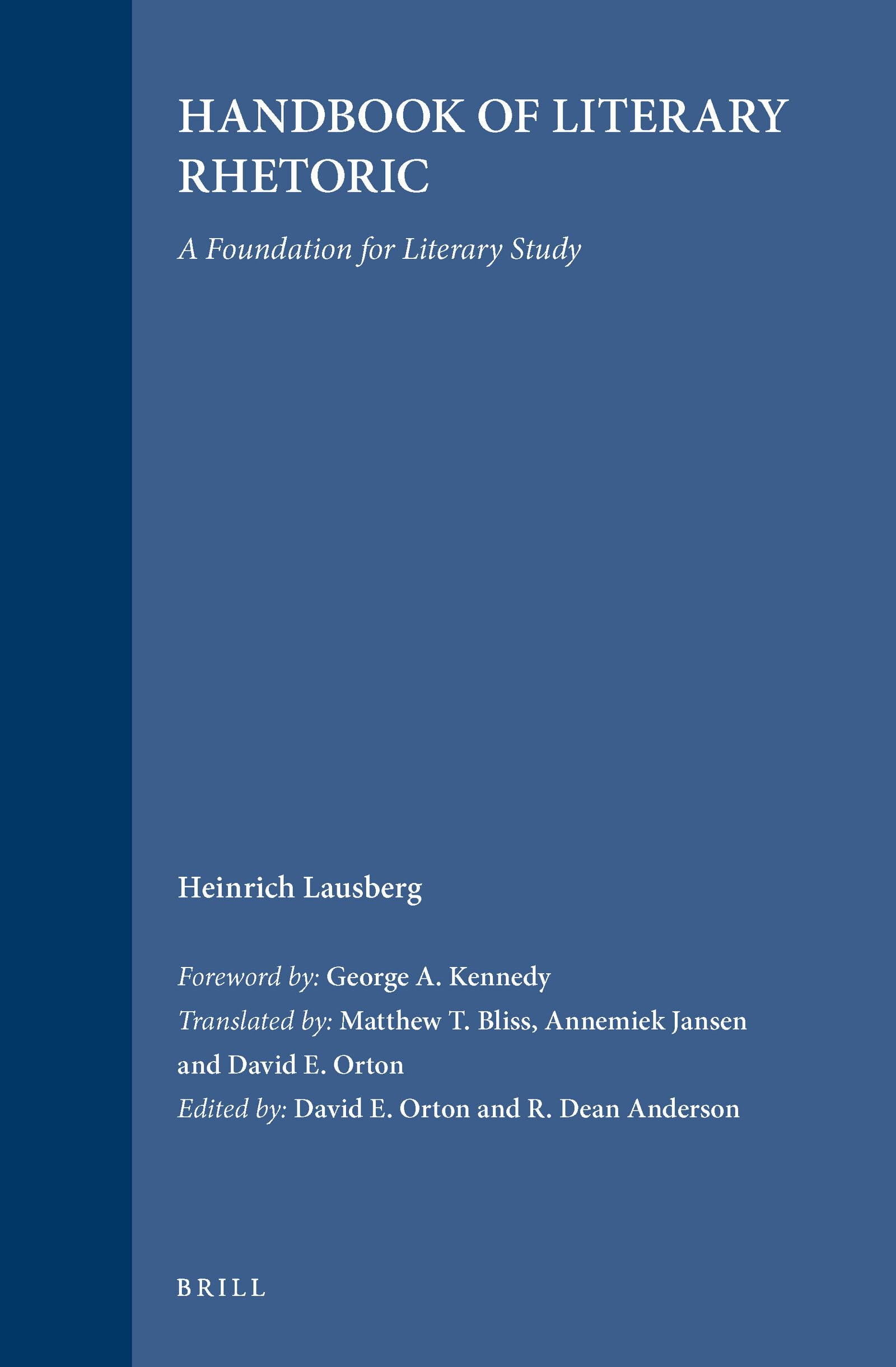 Details: Lausberg's Handbook of Literary Rhetoric, here made available for the first time in English, received high critical acclaim on its first publication in 1963. It is a monumental work of extraordinary erudition, organisation and comprehensiveness, and enjoys unrivalled authority in its formal description of rhetorical techniques. The present edition is a translation of the second edition of 1973, which was reprinted in 1990. The Handbook has for many years been a standard reference work for all engaged in the study of literature and rhetoric. This translation will ensure its accessibility to a new generation of students of rhetoric.