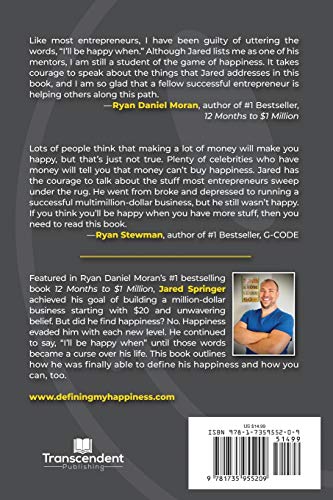 Details: Featured in Ryan Daniel Moran’s #1 bestselling book 12 Months to $1 Million, Jared Springer achieved his goal of building a million-dollar business starting with $20 and unwavering belief. But did he find happiness? No. Happiness evaded him with each new level. He continued to say, “I’ll be happy when” until those words became a curse over his life. This book outlines how he was finally able to define his happiness and how you can, too.