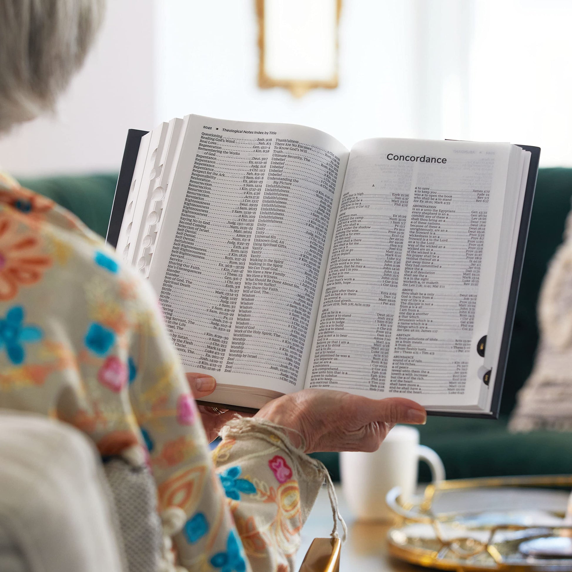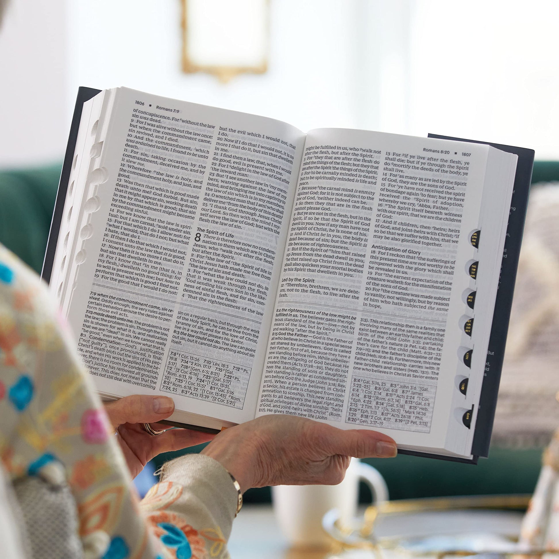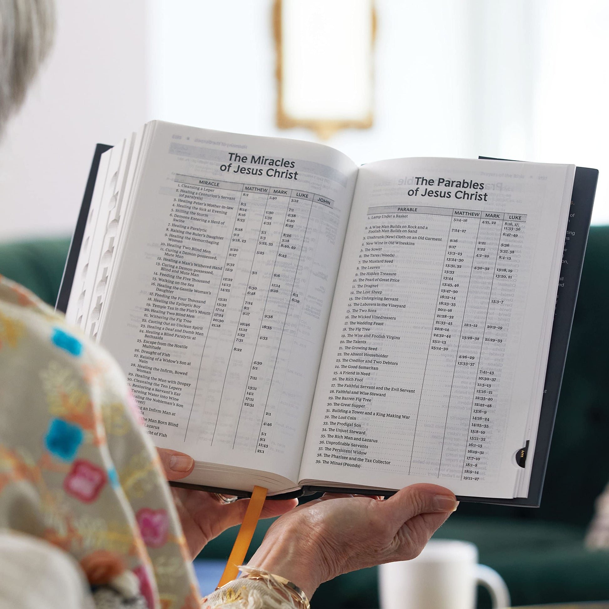 Features include: The Presentation page is a special place to personalize this special gift by recording a memory or note Bible book introductions provide a concise overview of the background and historical context of the book about to be read Over 32,000 End-of-page cross references allow you to find related passages quickly and easily Concise study notes with over 293,000 words provide helpful comments on passages of Scripture Over 300 theological notes and index draw attention to important doctrinal themes Ribbon markers make it easy to navigate and keep track of where you were reading Extensive study aids: Prayers of the Bible of nearly 100 prayers in the Bible, who prayed them, and what they prayed about. Prophecies of The Messiah Fulfilled in Christ provides 43 Old Testament prophecies and where they have been fulfilled in the New Testament. Harmony of the Gospels details the life and ministry of Jesus in chronological order showing where each event and teaching occur in the Gospels. Miracles of Christ shows where you can find 37 miracles in the Gospels. Concordance with over 1,000 terms provides an alphabetical listing of important passages by key words Full color maps show the layout of Israel and other biblical locations for better context Durable and flexible Smyth-sewn binding allows the Bible to lay flat wherever you are reading Easy-to-read large 11-point KJV Comfort Print