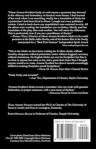 Details: This is the Medea we have been waiting for. It offers clarity without banality, eloquence without pretension, meter without doggerel, accuracy without clumsiness. No English Medea can ever be Euripides', but this is as close as anyone has come so far, and a good deal closer than I thought anyone would ever come. Arnson Svarlien has shown herself exceedingly skillful in making Euripides sound Euripidean.--David M. Schaps, Bryn Mawr Classical Review