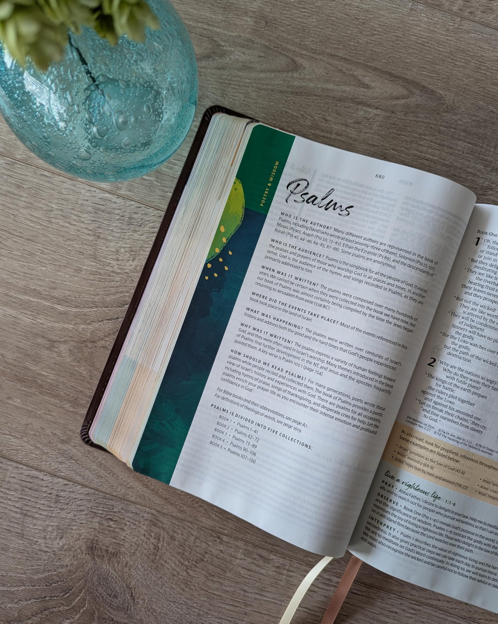 This women’s Bible is unlike any other on the market. Features include: A Bible study on every page drawing you deeper into understanding and applying God’s Word Reflection questions to facilitate personal introspection and spiritual growth. Encouraging profiles providing inspiring examples of heroes of the faith. A topical index that easily connects you with verses on topics relevant to your life. Access to a suite of resources including a linked audio Bible through the Filament Bible app to experience God’s Word in a multi-sensory way. A unique discipleship path through the Bible, based on the seven COURAGE steps that will empower you to navigate your life with faith and resilience. The clear and accurate, easy-to-read New Living Translation. This is the perfect Bible for any woman who is serious about growth and transformation in Christ and for anyone looking for an innovative New Living Translation Bible for women.