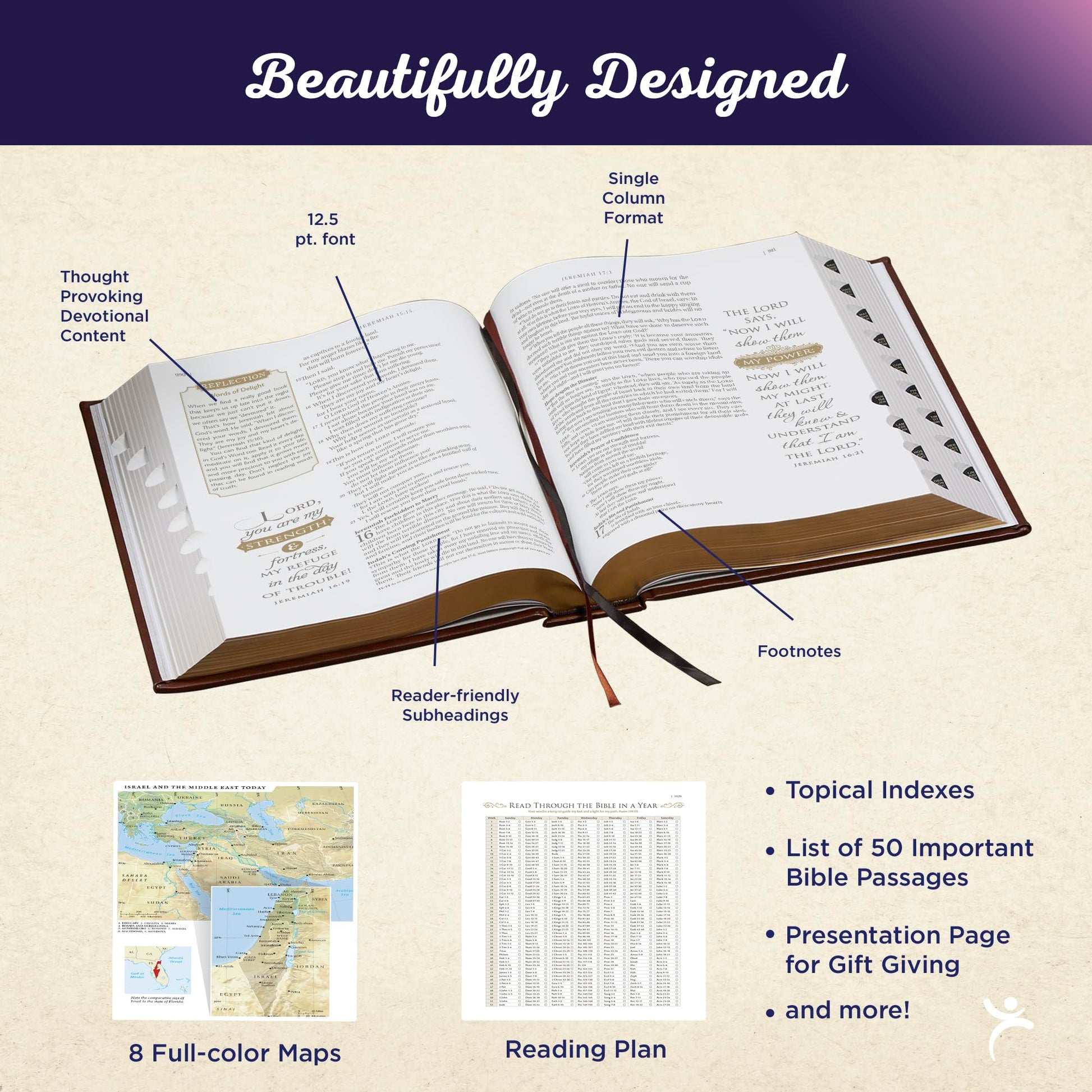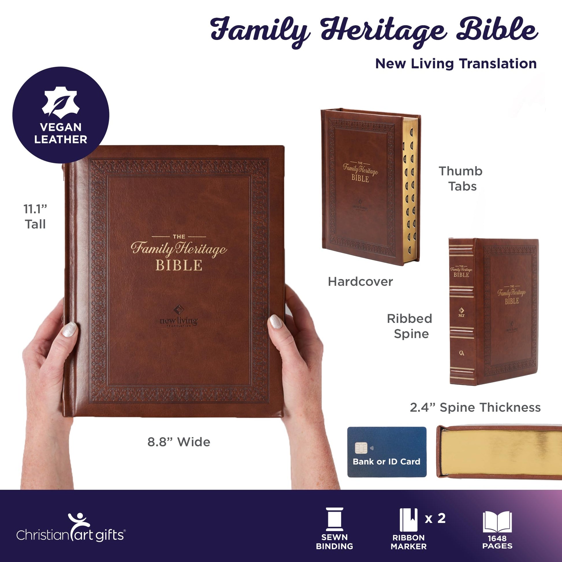 NLT Family Heritage Bible, Large Print Family Heirloom Devotional Bible for Study, New Living Translation Holy Bible Vegan Leather Hardcover, ... Content, Brown (NLT Family Heritage Editions)