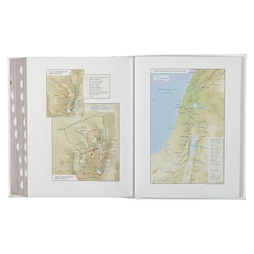 The Bible will become the keeper of family history when you record special milestones, marriages, deaths, births, and family lines. These special pages, including a presentation page, are all decorated with beautiful gilded accents. To help you read the Bible consistently, a one-year reading plan is included. A nice feature is the special family blessing drawn from Romans, and beautifully illustated.