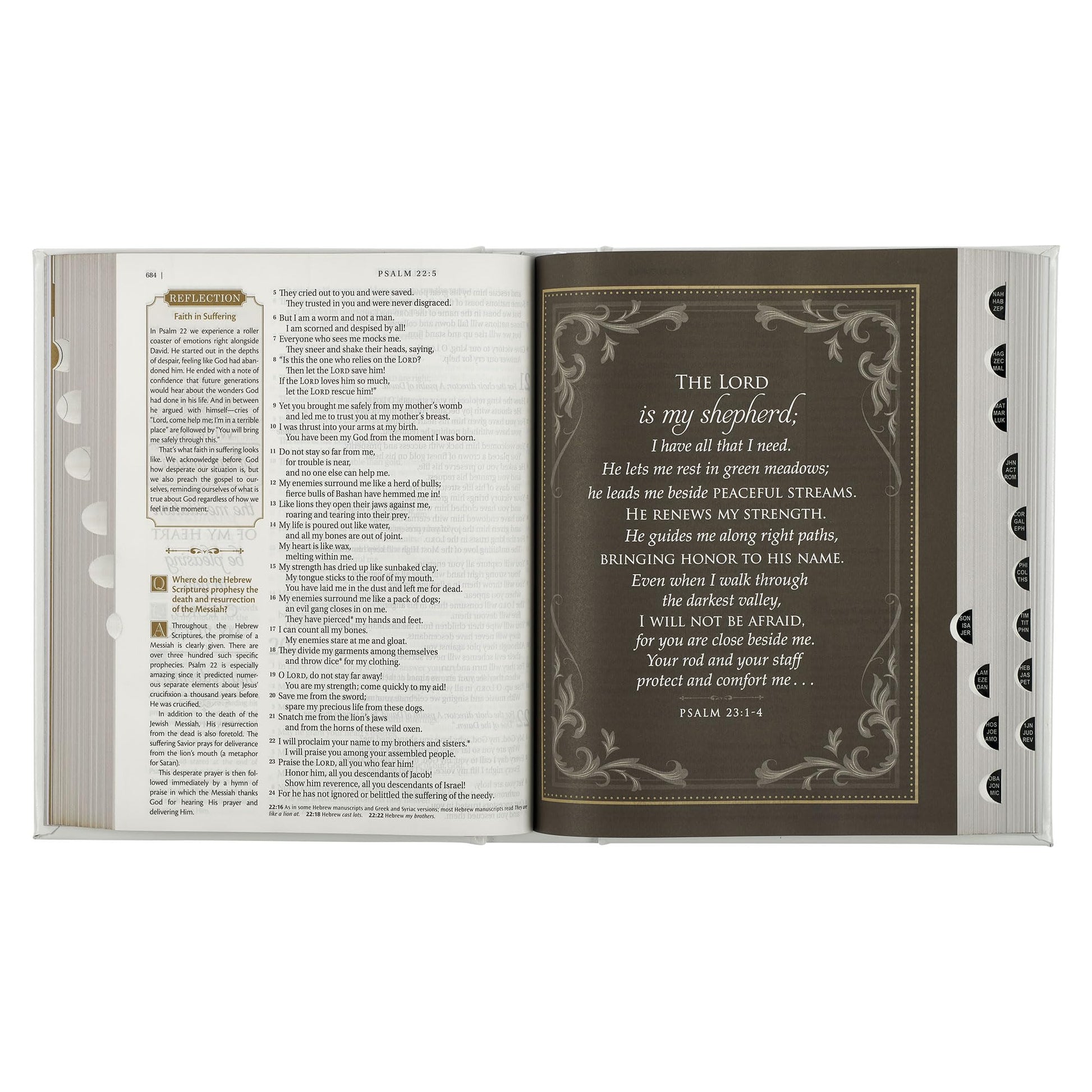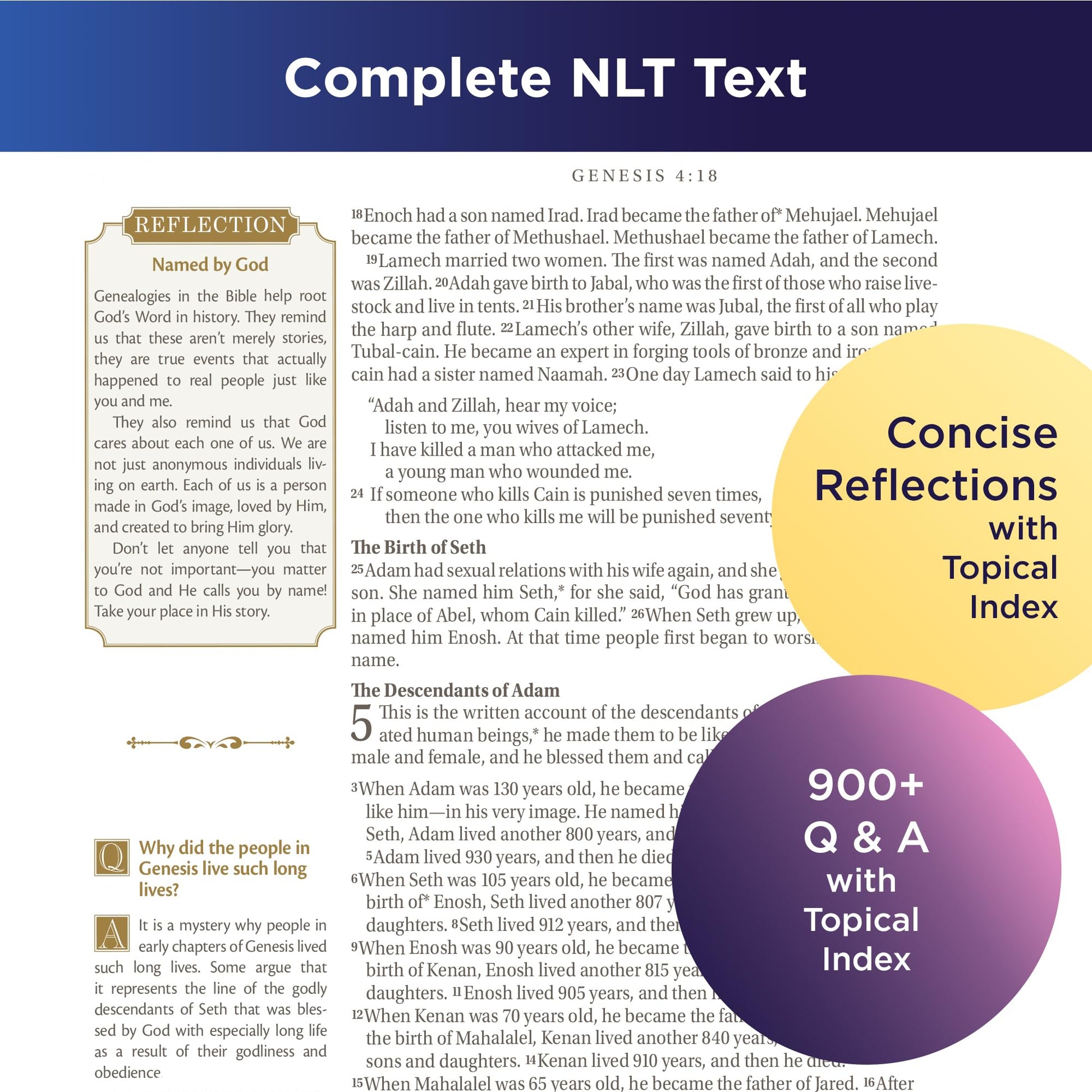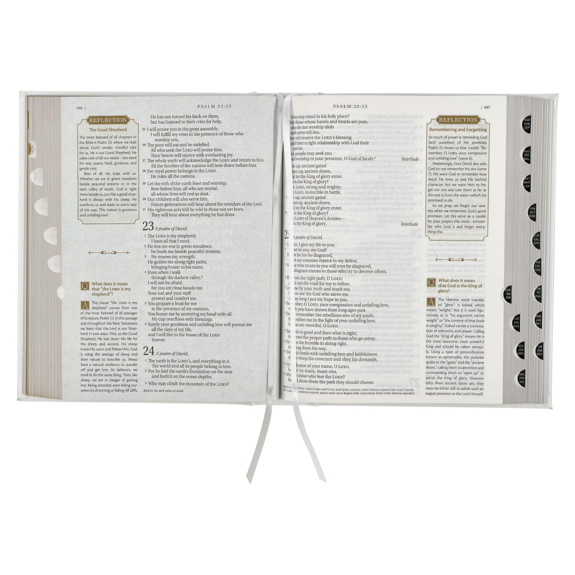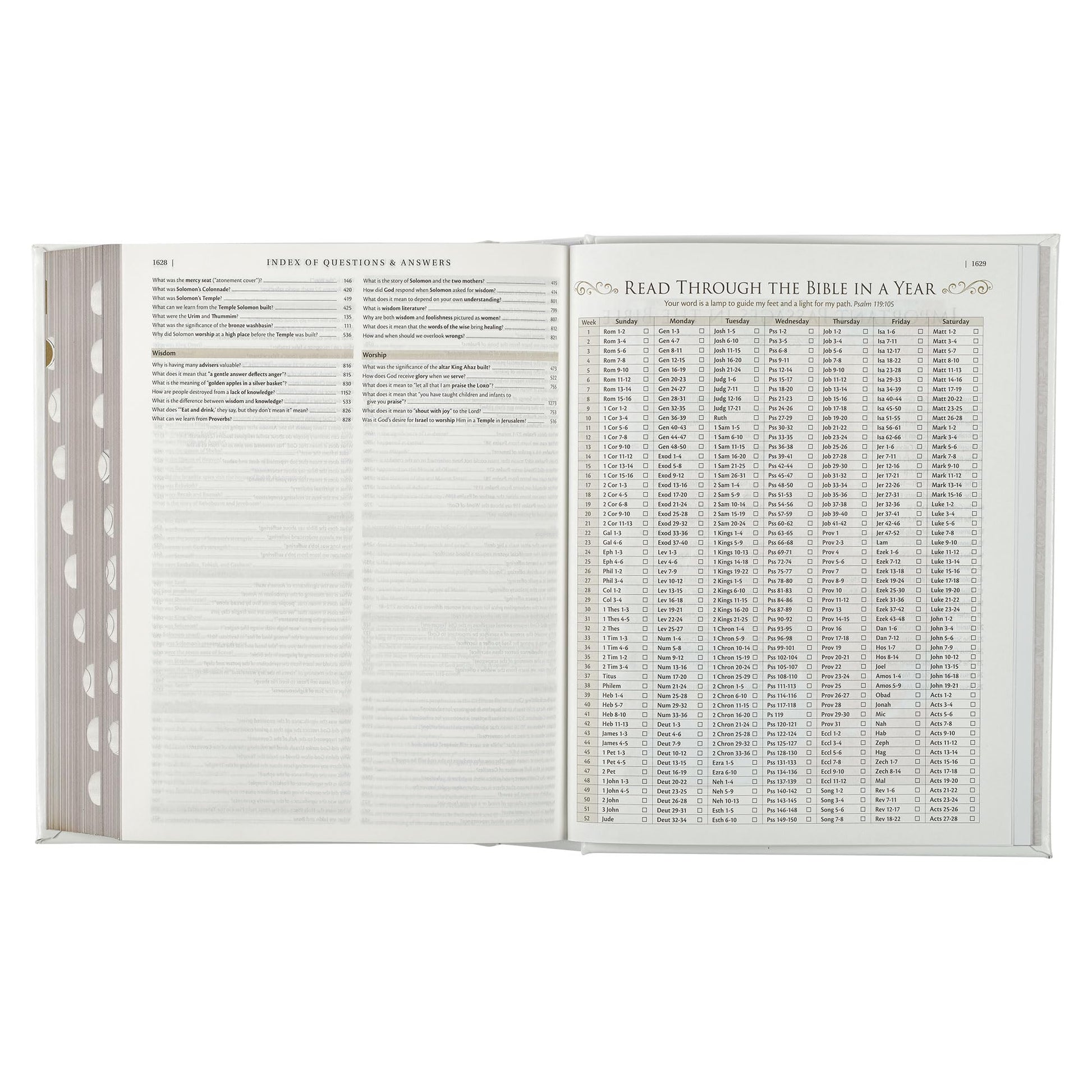 This resource-rich Bible edition includes almost 700 reflections by Nancy Taylor. These reflections, perfect for deepening your understanding during personal or family devotions, are spread throughout the Bible and indexed at the back for your convenience. The Bible also has a section that answers over 900 theological and practical questions to help you understand various topics about the Bible and the Christian life. A topical index at the back makes it easy to locate specific Q&As.