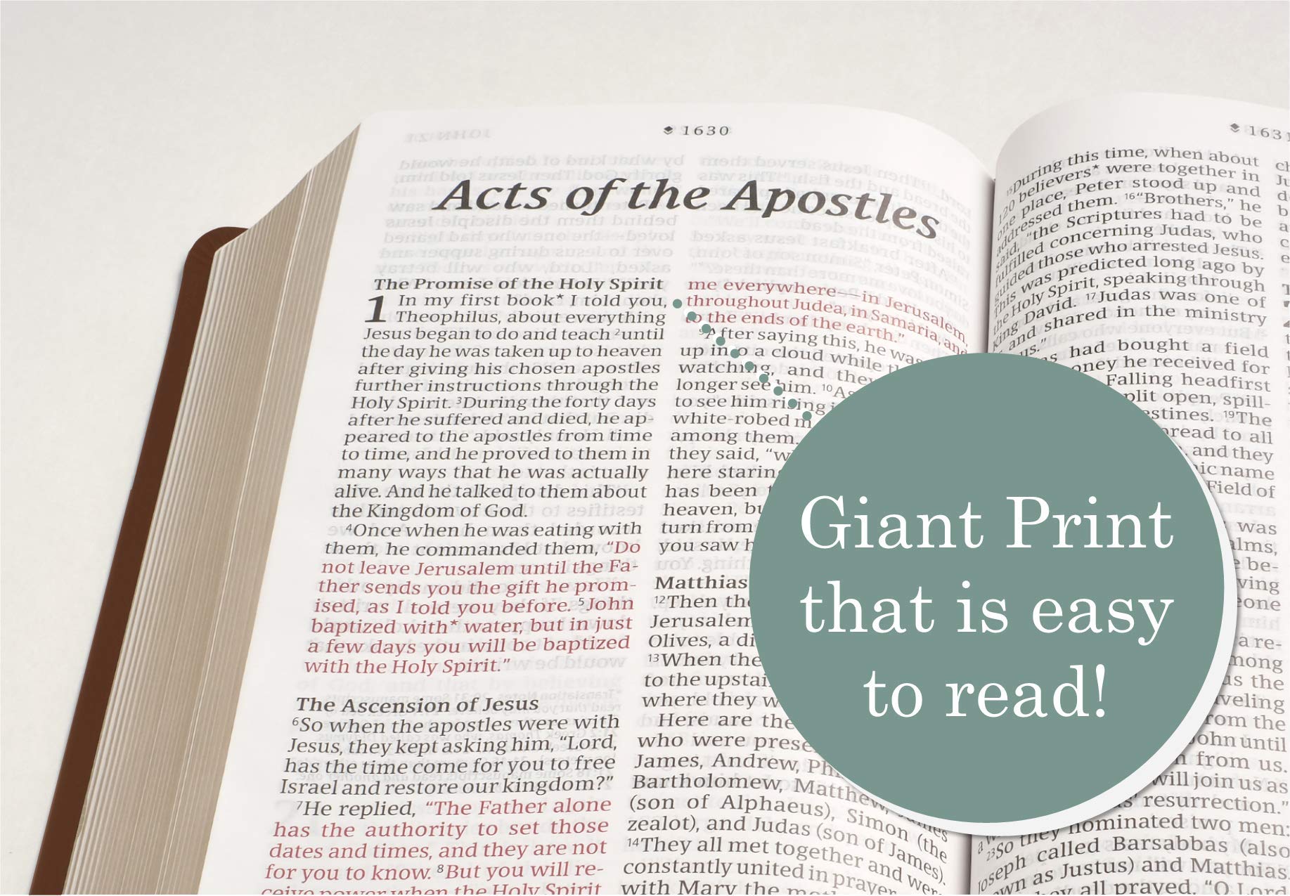 The Tyndale NLT Personal Size Giant Print Bible, Filament Enabled has readable text and an attractive layout in an easy-to-carry size. And while it has the same low price as basic text-only Bibles, the NLT Personal Size Giant Print Bible offers much more. It not only features a bold new design and the trusted and much-loved New Living Translation (NLT) but also includes the groundbreaking Filament Bible app.