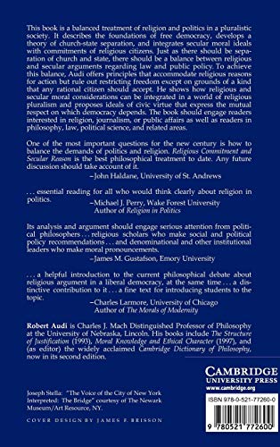Details: Many religious people are alarmed about features of the current age--violence in the media, a pervasive hedonism, a marginalization of religion, and widespread abortion. These concerns influence politics, but just as there should be a separation between church and state, so should there be a balance between religious commitments and secular arguments calling for social reforms. Robert Audi offers a principle of secular rationale, which does not exclude religious grounds for action but which rules out restricting freedom except on grounds that any rational citizen would accept. This book describes the essential commitments of free democracy, explains how religious and secular moral considerations can be integrated to facilitate cooperation in a world of religious pluralism, and proposes ideals of civic virtue that express the mutual respect on which democracy depends.
