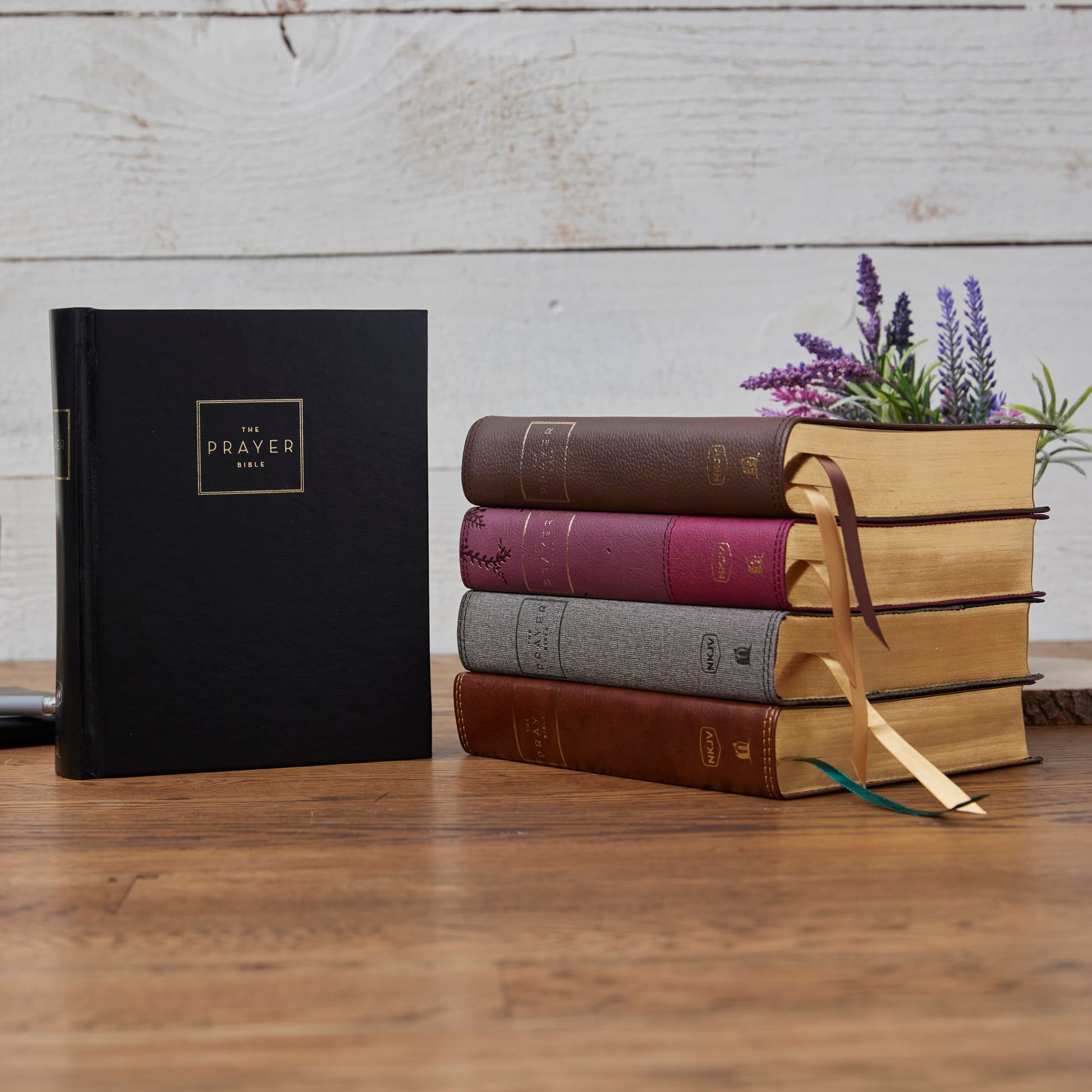 Features include: Introduction on how to use The Prayer Bible Bible book introductions provide a concise overview of the background and historical context of the book about to be read 1,200 prayer prompts, at least one for each chapter of the Bible to strengthen your prayer life Words of Christ in red quickly identify Jesus’ teachings and statements Presentation page allows you to personalize this special gift by recording a memory or note Prayers of the Bible include nearly 100 prayers in the Bible, who prayed them, and what they prayed about Bible reading plan guiding you through the entire Bible in a year Articles with tips and insight to help you engage with Scripture Satin ribbon marker make it easy to navigate and keep track of where you were reading Clear and readable 8.5-point NKJV Comfort Print®